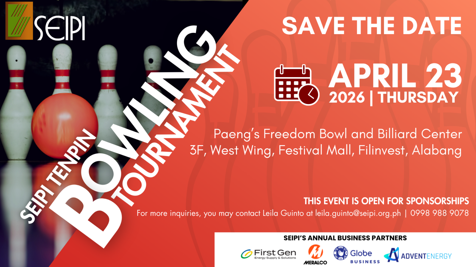 | 2026 - SEIPI TENPIN Bowling Tournament | 1776967200 23rd April 2026 - 11th June 2026 |