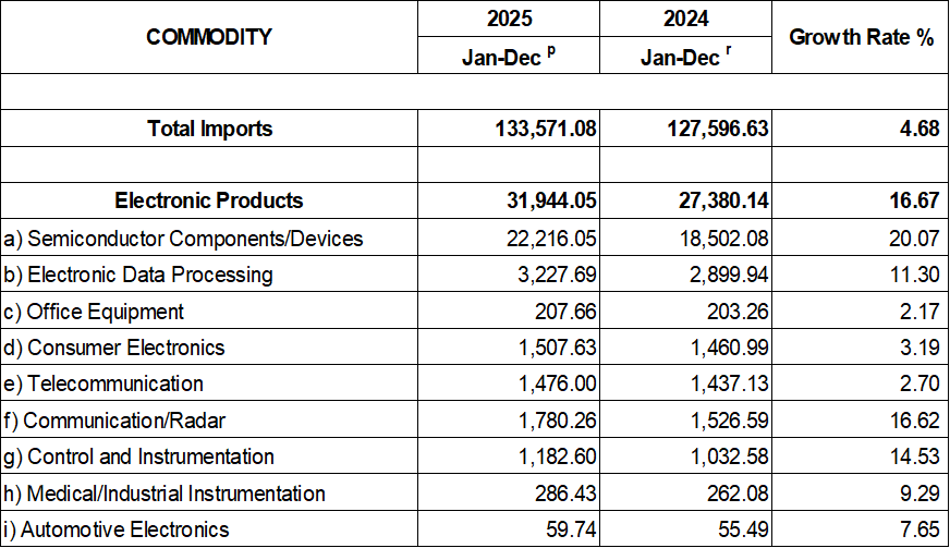 PHILIPPINE ELECTRONICS IMPORT PERFORMANCE NOVEMBER 2025