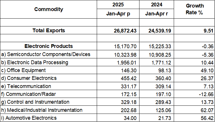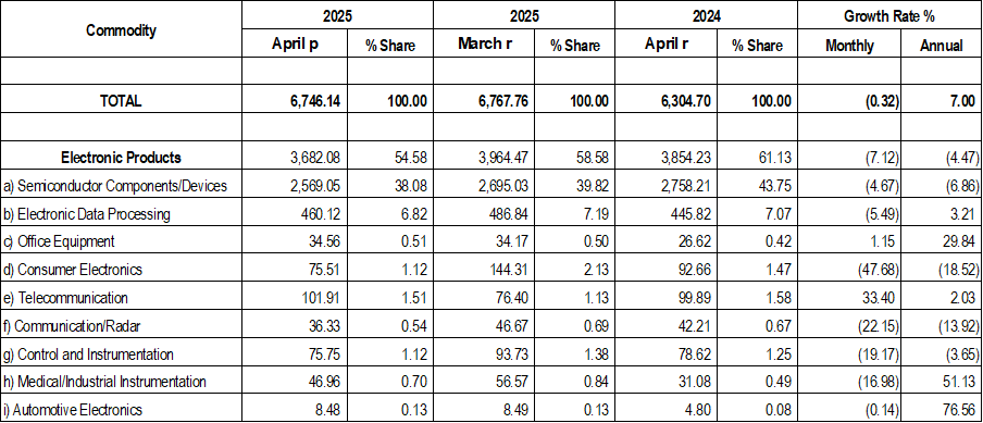 PHILIPPINE ELECTRONICS EXPORT PERFORMANCE APRIL 2025
