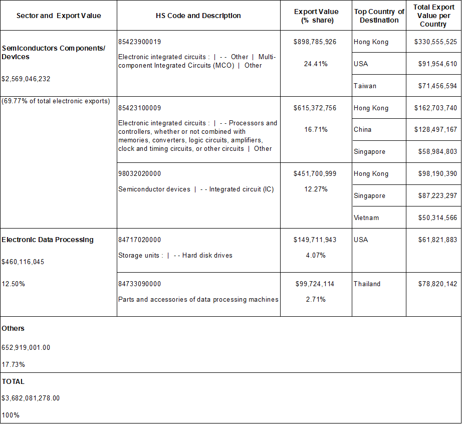 Table 3: PH Top Electronics Export Products by Sector (Year-to-date)