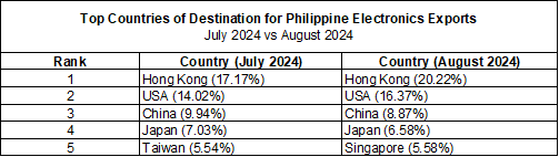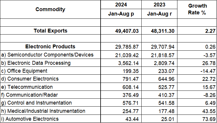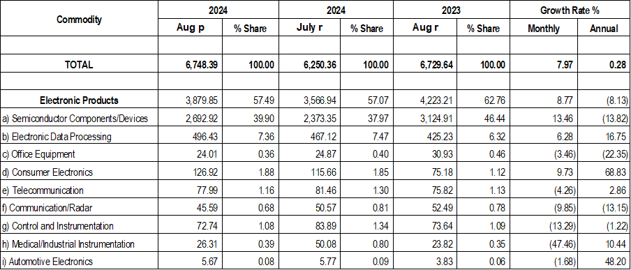 PHILIPPINE ELECTRONICS EXPORT PERFORMANCE AUGUST 2024