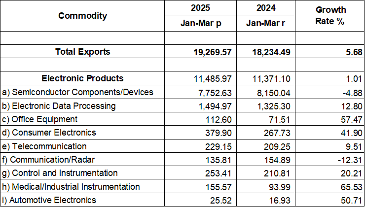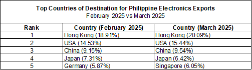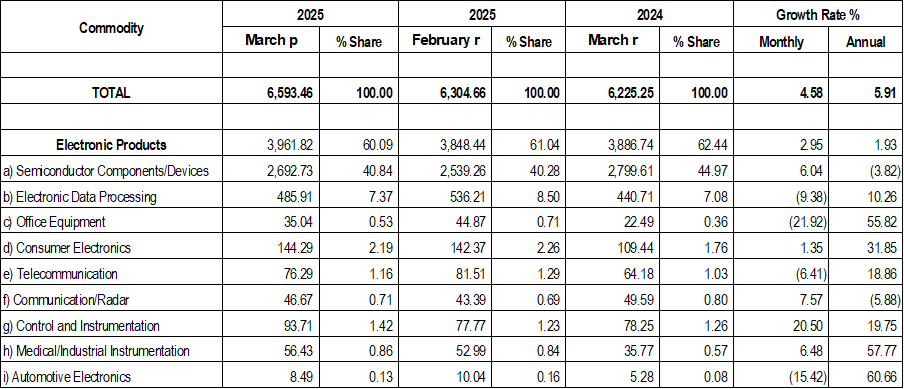 PHILIPPINE ELECTRONICS EXPORT PERFORMANCE MARCH 2025