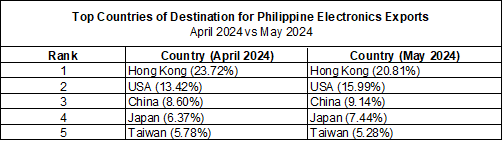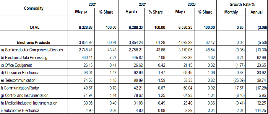 PHILIPPINE ELECTRONICS EXPORT PERFORMANCE MAY 2024