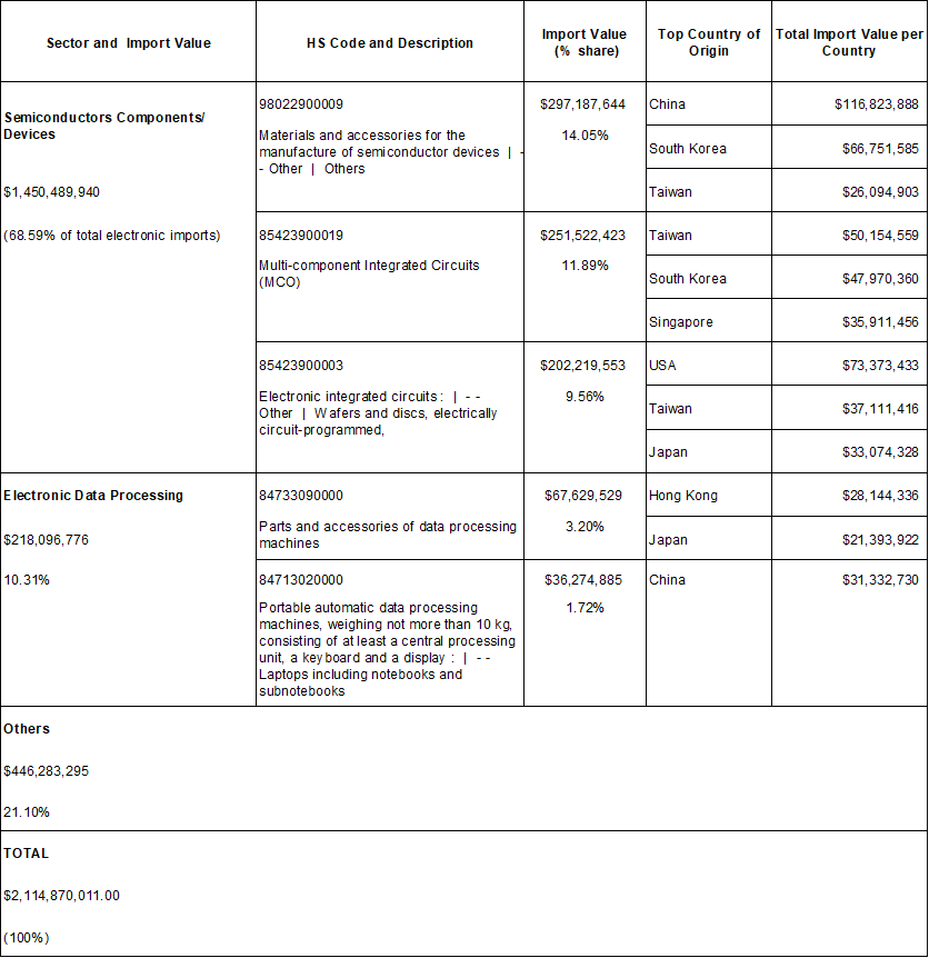 Table 3: PH Electronics Imports Product by Sector (Year-to-date)