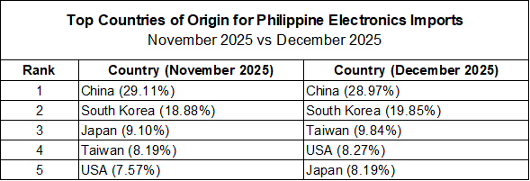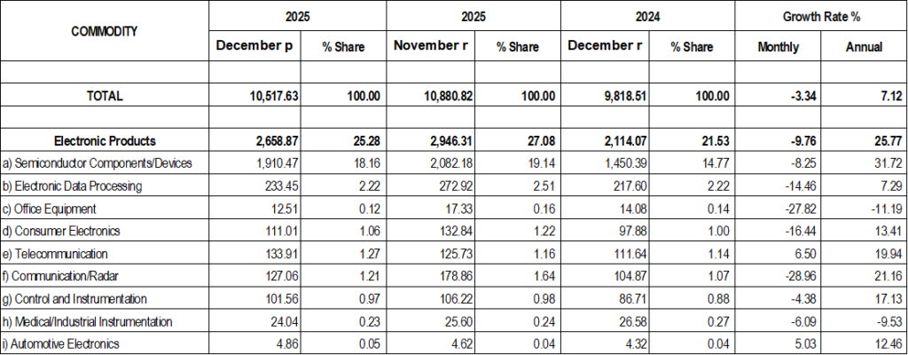 PHILIPPINE ELECTRONICS IMPORT PERFORMANCE DECEMBER 2025